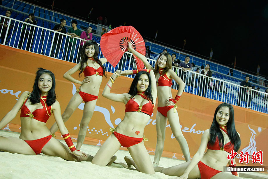 11月24日,廣州亞運(yùn)會(huì)男子沙灘排球奪冠戰(zhàn)落下戰(zhàn)幕,沙灘寶貝們的難忘營(yíng)地和精彩表演也就此謝幕。中新社記者 張茵 攝