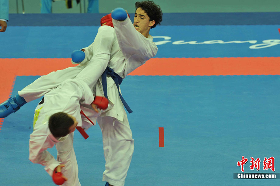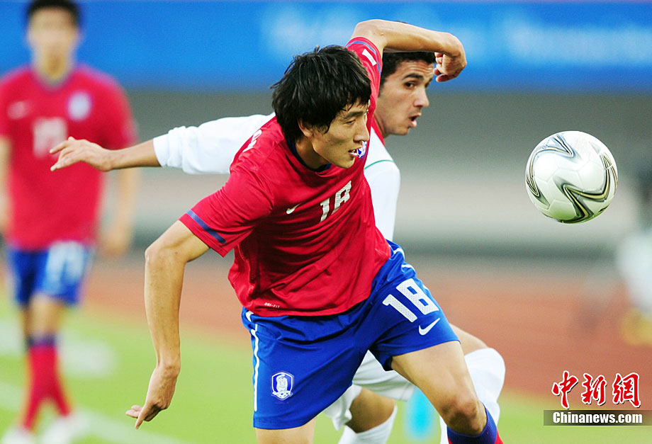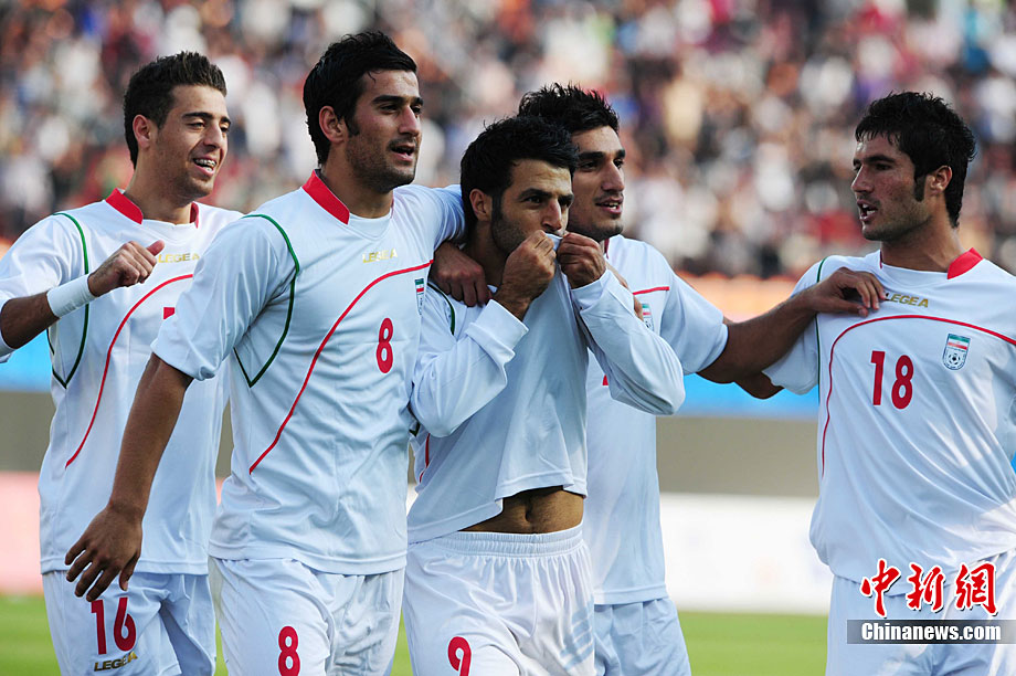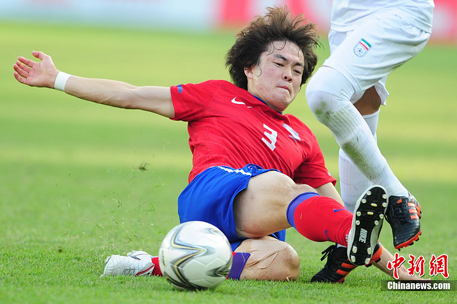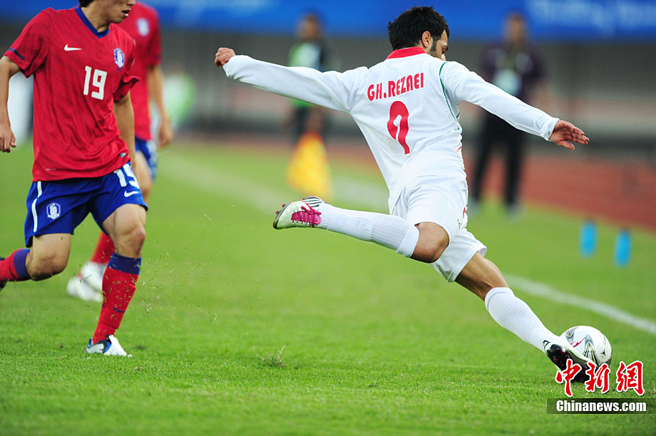 11月25日下午,韓國(guó)隊(duì)與伊朗隊(duì)爭(zhēng)奪亞運(yùn)會(huì)男子足球銅牌戰(zhàn),上半場(chǎng)開賽僅5分鐘,伊朗隊(duì)9號(hào)吳拉姆·禮薩·禮薩伊攻入一球。中新社記者 陳文 攝