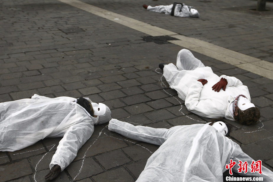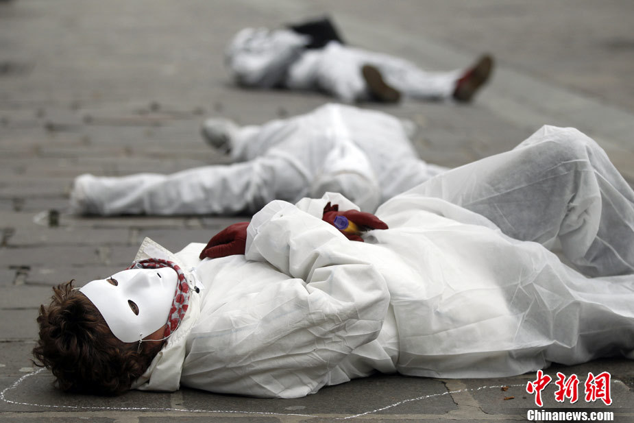 11月25日,為國際消除家庭暴力日。在法國巴黎,一些婦女身穿白色衣服呼吁反對家庭暴力。