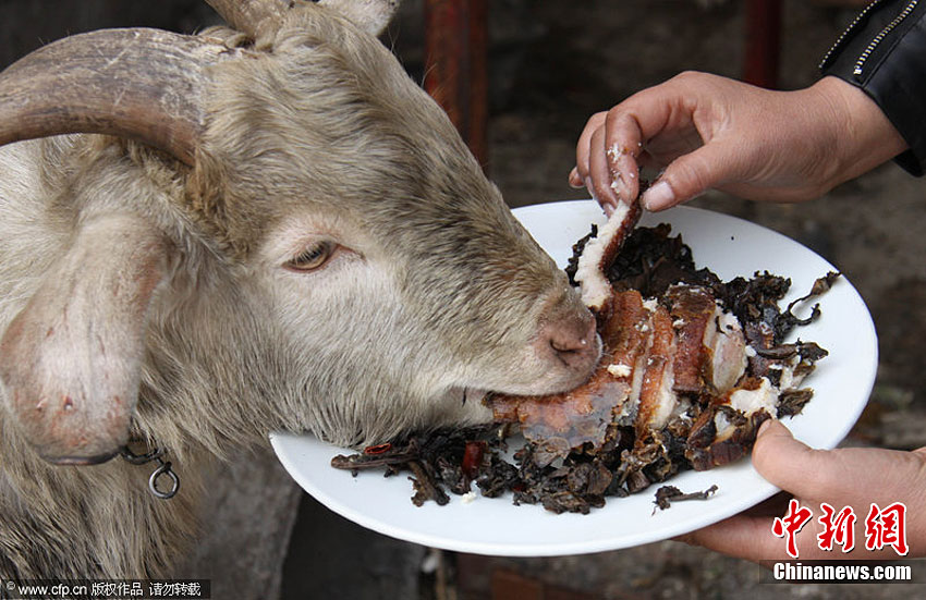 11月29日,在山東省臨沂市羅莊區盛莊街道,“酒鬼山羊”在大口喝酒。據悉,臨沂市羅莊區盛莊街道亓女士家養了一只波爾山羊,平時和狗拴在一起,經常用酒店的剩飯菜喂狗,兩個月前,亓女士發現這只山羊開始和狗爭食吃,雞魚肉蛋樣樣品嘗,看熱鬧的村民試著用酒喂食,沒想這只山羊對啤酒和白酒來者不拒,而且酒后還撒潑到處頂撞人。朱武濤 攝 圖片來源:CFP視覺中國