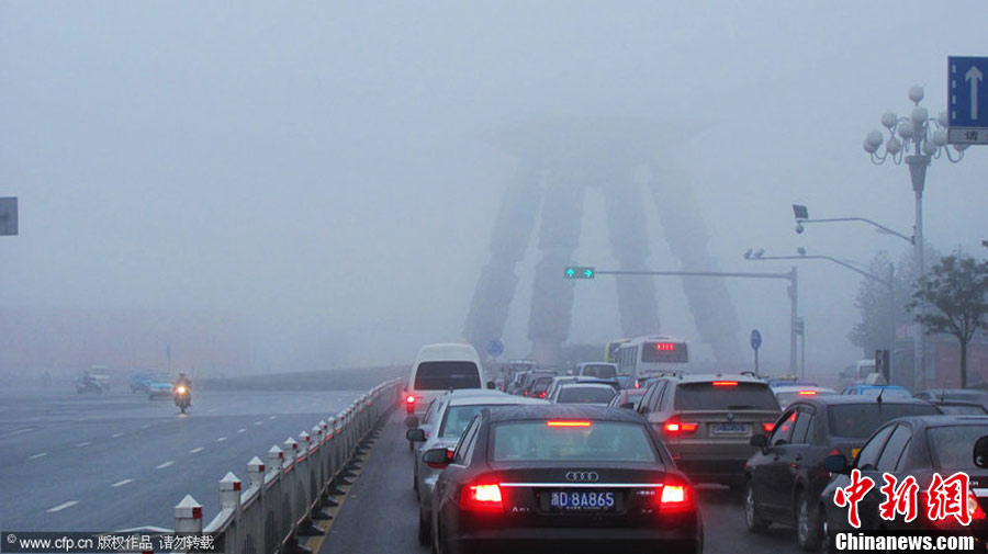 11月30日夜間到12月1日上午,遼寧、華北平原、陜西南部、黃淮大部、江淮、江漢、江南北部、四川東部、云南西南部等地有輕霧,其中,河北中南部、京津地區(qū)、山東北部、蘇皖南部、湖北東部、湖南西北部、四川東北部、云南西南部等地的部分地區(qū)有能見度不足1000米的霧,局部地區(qū)能見度不足200米。圖為12月1日,河北邢臺遭遇大霧天氣。陳克家 攝 圖片來源:CFP視覺中國