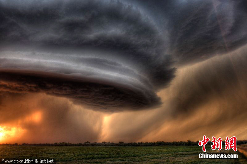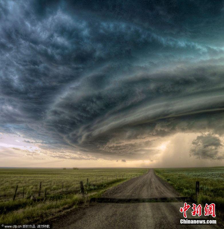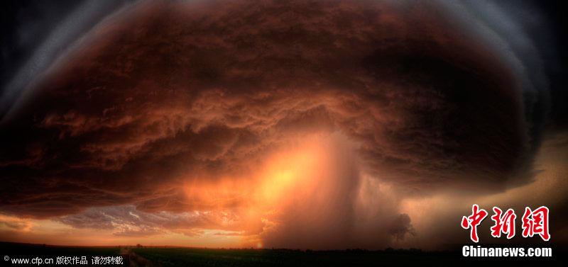 2010年12月2日消息,這些彰顯出大自然的無窮威力的照片都出自一名業余攝影師之手。34歲的Sean Heavey是一名電工,他拍攝風暴照片的時間已經長達7年。今年,他拍攝的一張美國蒙大拿草原日落時分的超級龍卷風照片為他贏得了《國家地理》的攝影獎。圖片來源:CFP視覺中國