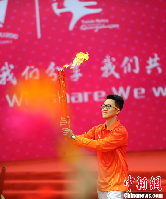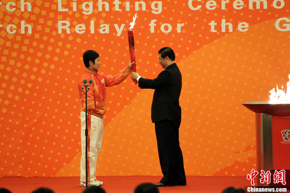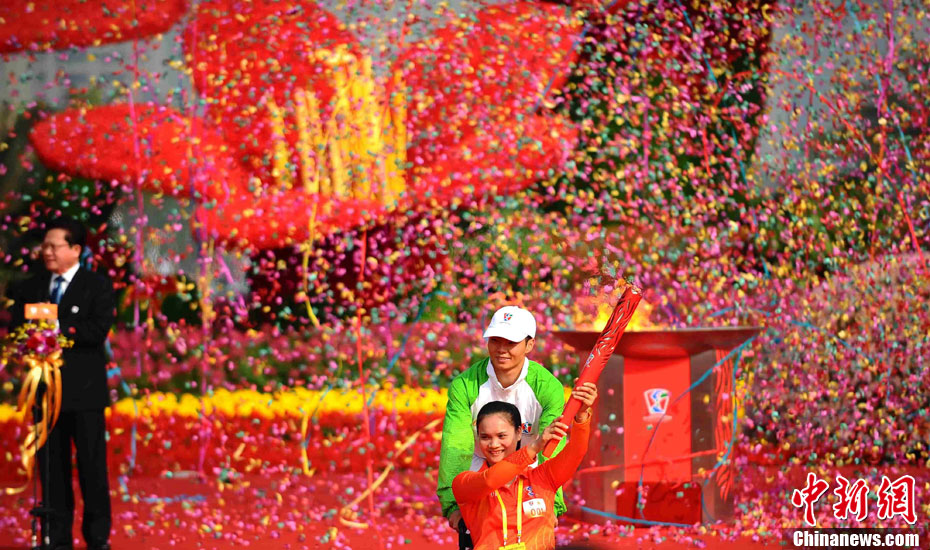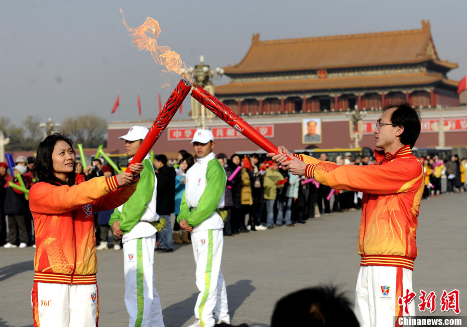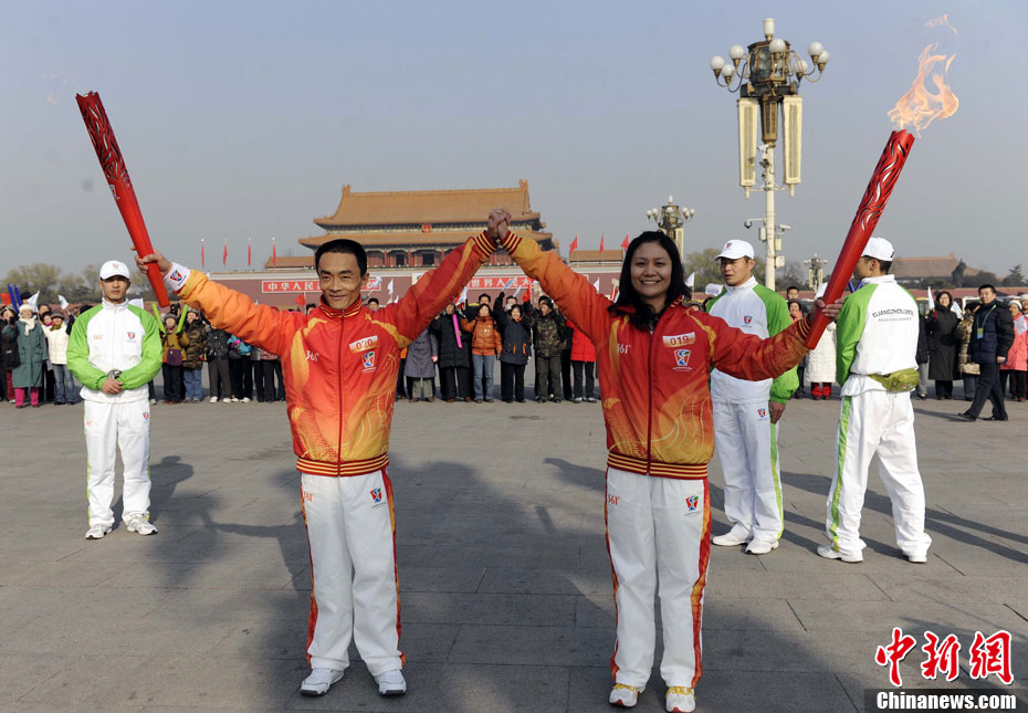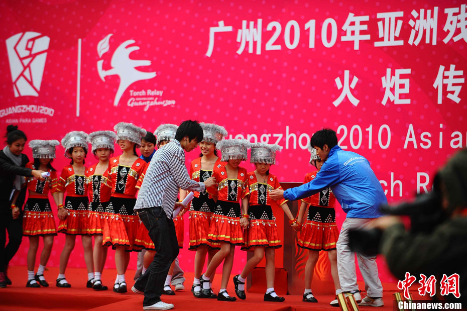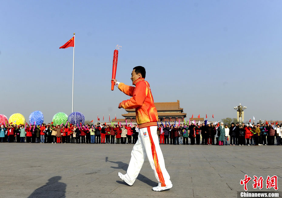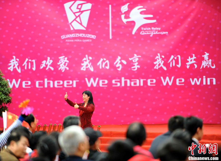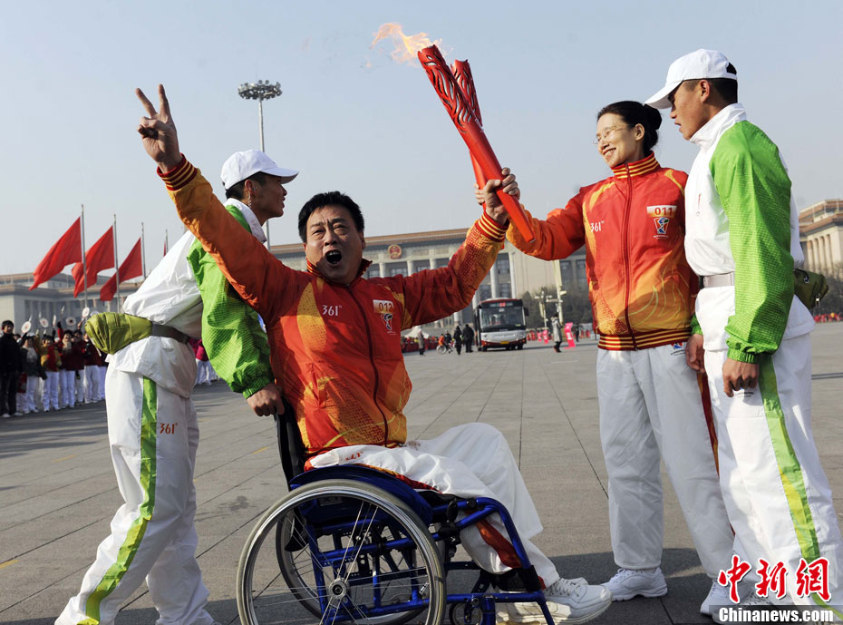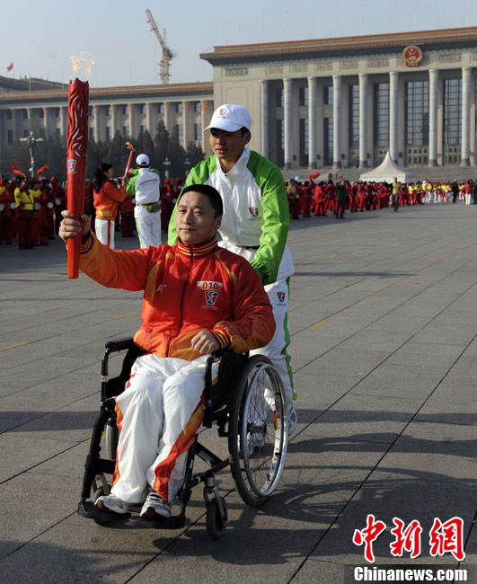 12月4日10時整,廣州2010年亞洲殘疾人運動會火炬點燃暨火炬傳遞活動在北京人民大會堂北大廳啟動。北京站傳遞活動有20棒火炬手,整個火炬傳遞活動圍繞天安門廣場北廣場進行。中新社記者 劉震 攝