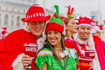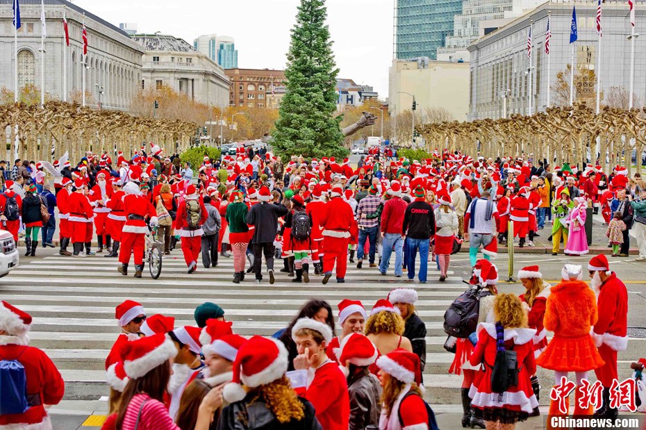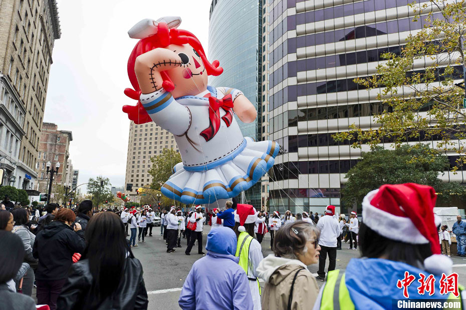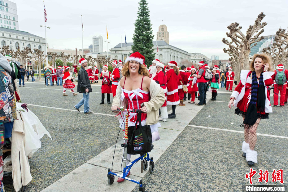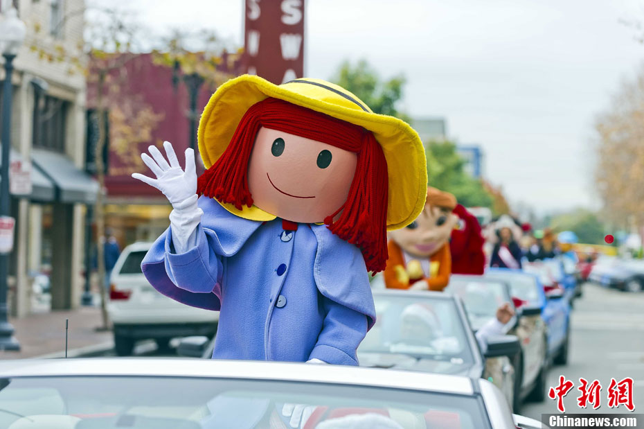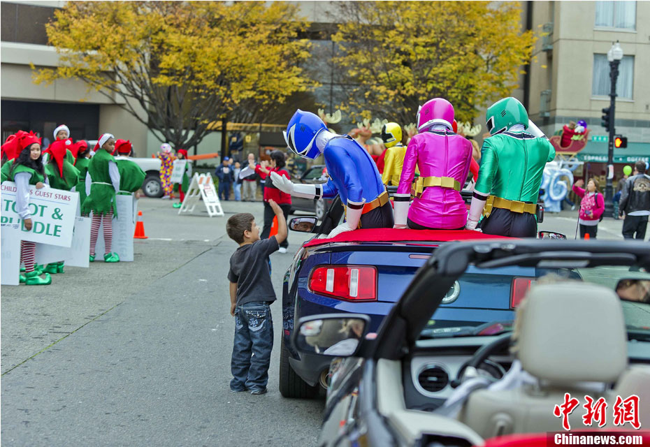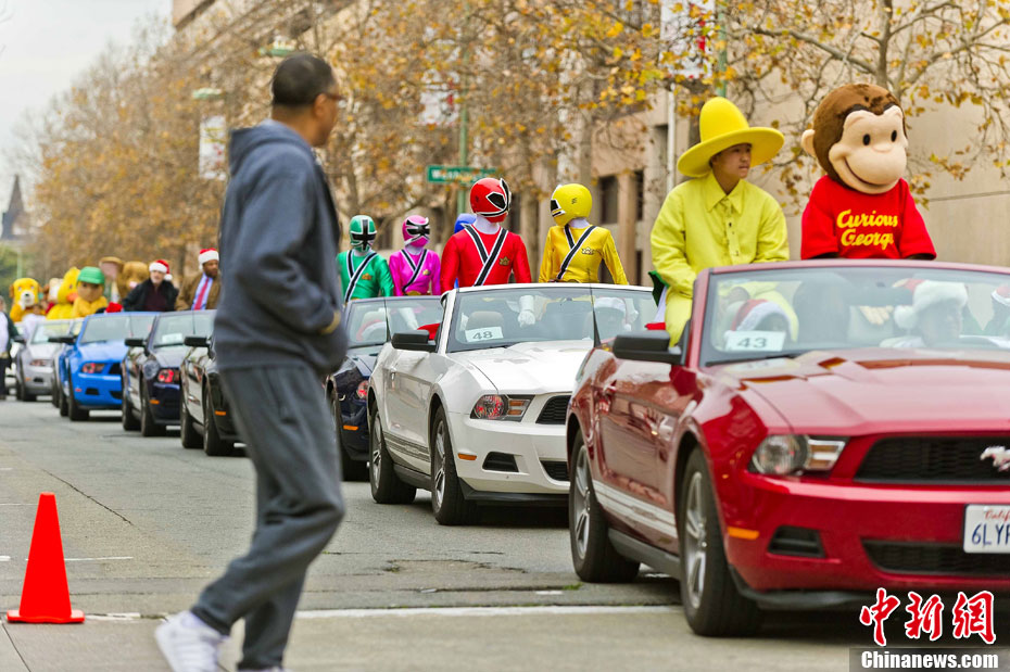 當地時間12月4日下午,美國加州奧克蘭舉行盛大兒童圣誕節游行,兒童動畫片中的卡通人物是游行隊伍的主角。圖為2010年度全美亞裔小姐劉彧莞與卡通人物們。中新社發 陳鋼 攝