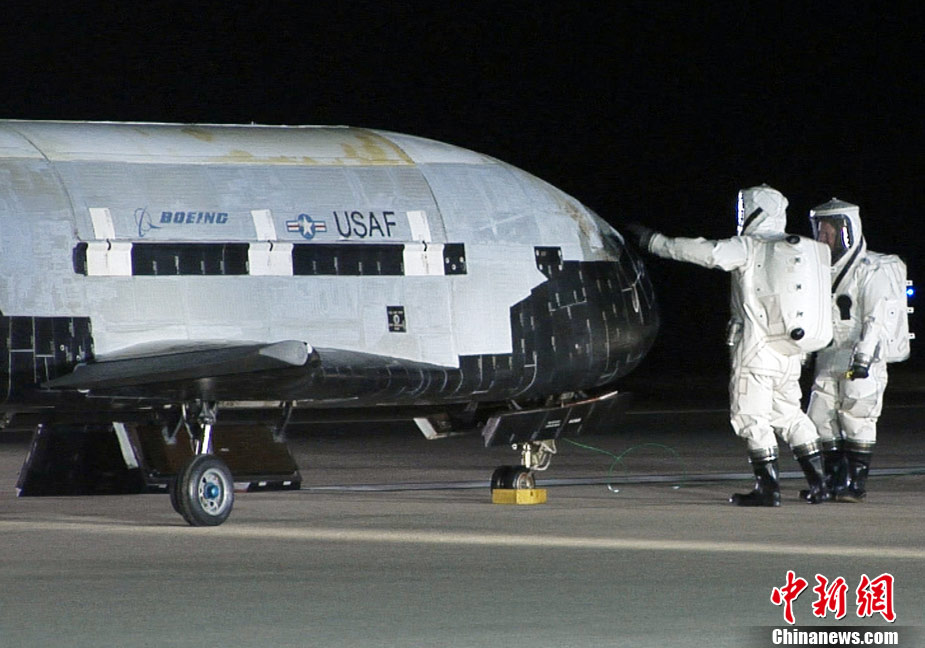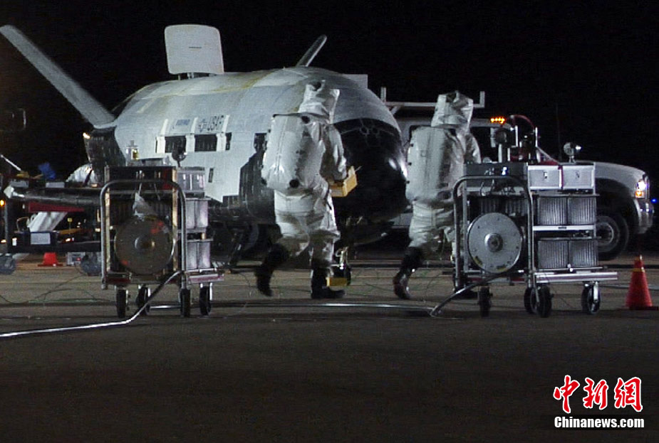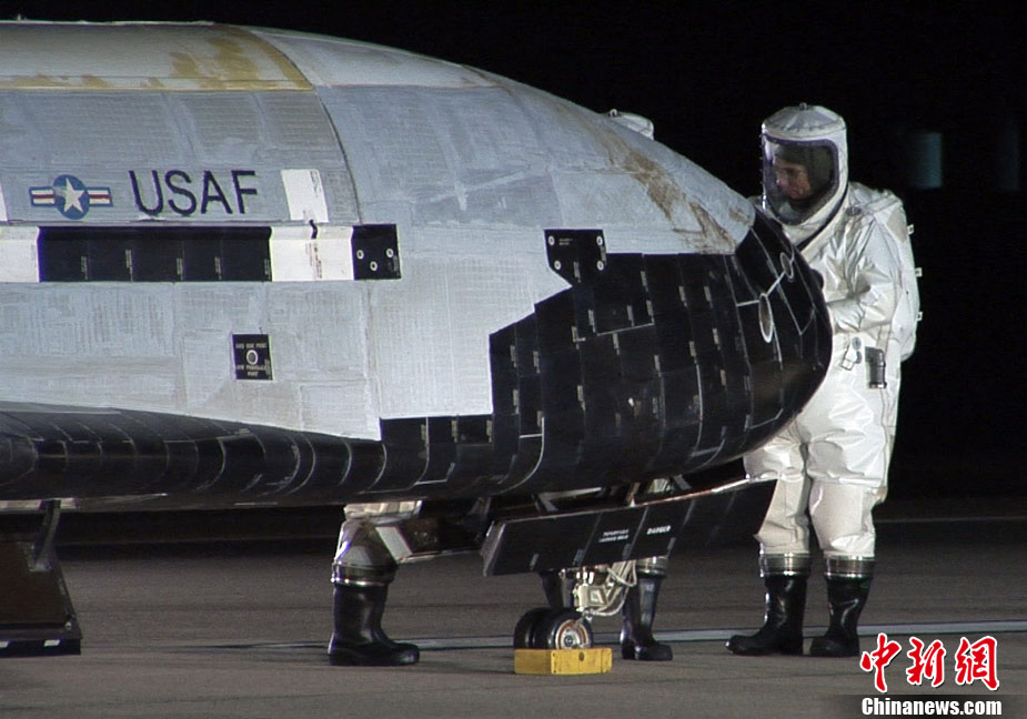 12月3日,美軍一架X-37B可重復(fù)飛行無人空天飛機(jī)在結(jié)束220天的旅程之后成功返回地球。空天飛機(jī)項(xiàng)目是美軍秘密太空探測項(xiàng)目之一。這架空天飛機(jī)是2010年4月發(fā)射升空的。圖為在美國范登堡空軍基地著陸的X-37B無人空天飛機(jī)。