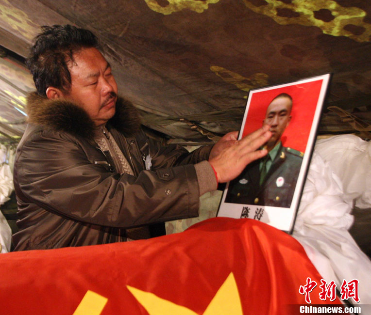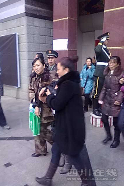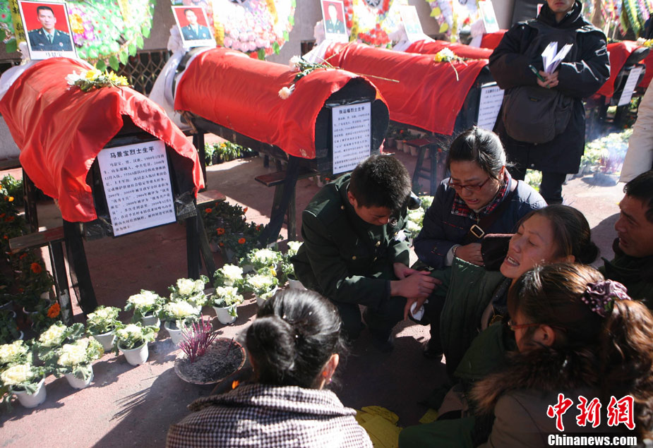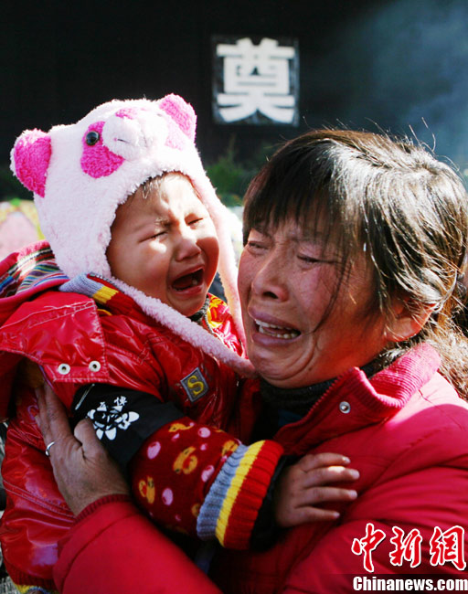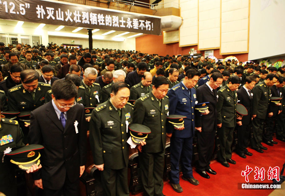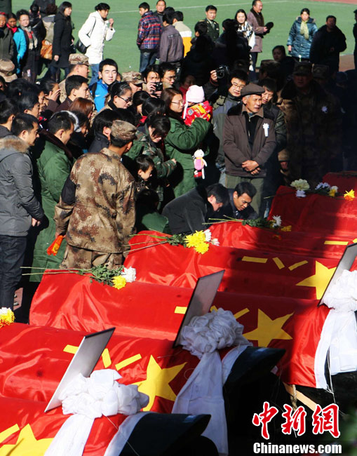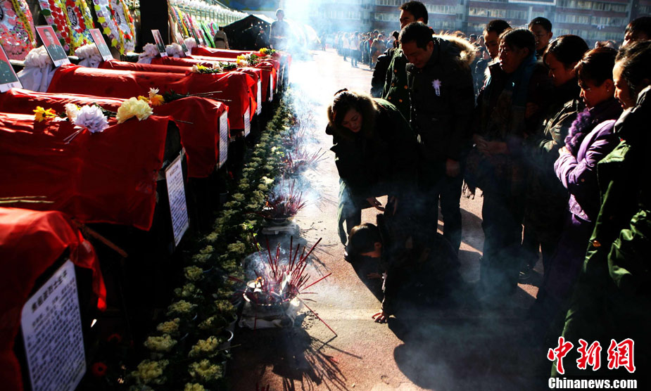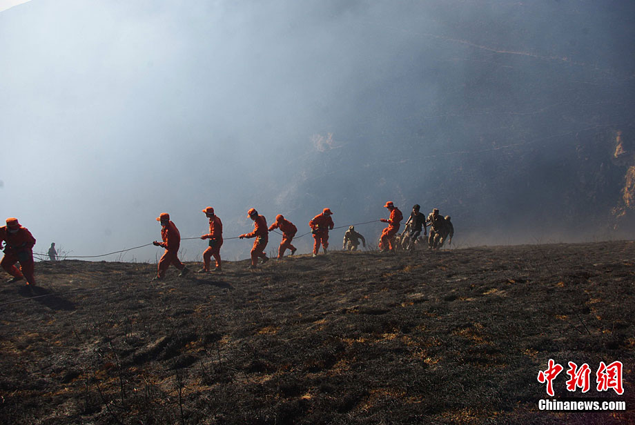 12月6日下午17時,在四川道孚救火中犧牲的15位英雄靈柩起運送往康定火化,上萬民眾胸帶白花來到英雄路過的川藏線國道317線道孚城區段送別英雄。圖為道孚縣民眾痛別英雄。 中新社發 劉忠俊 攝
