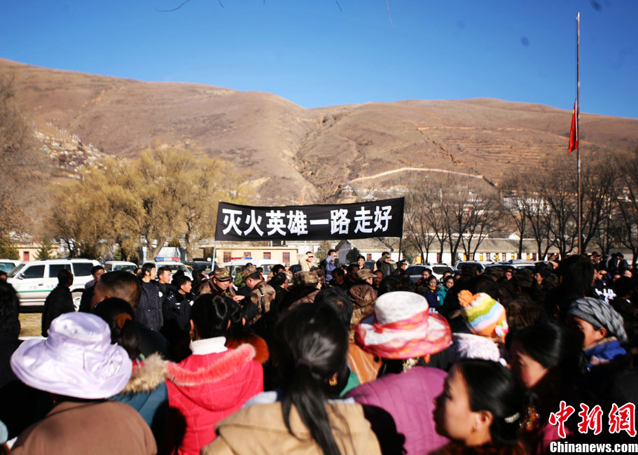 四川道孚上萬民眾送別15位救火英雄