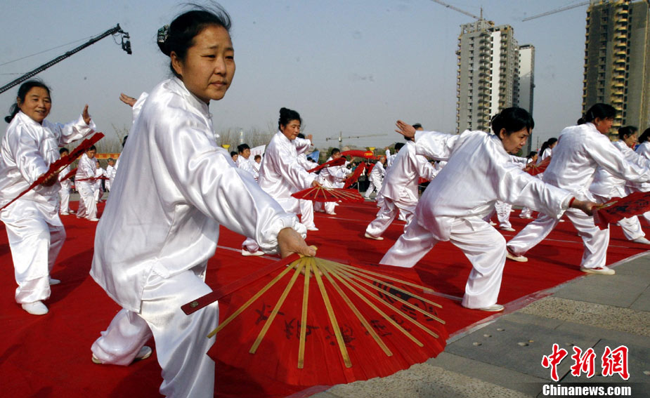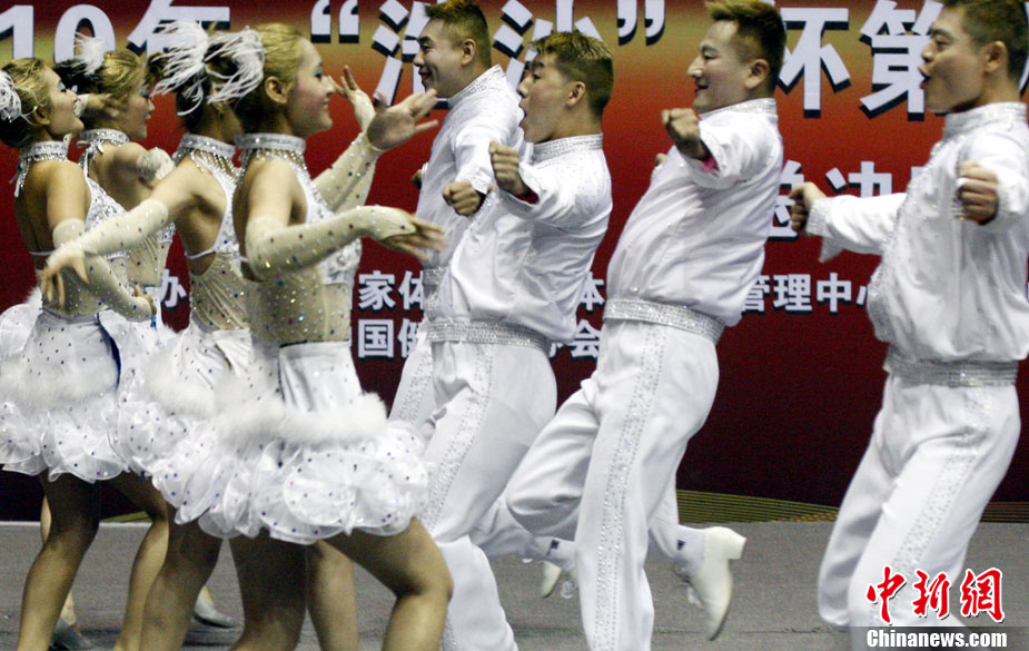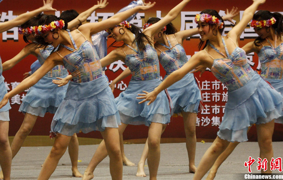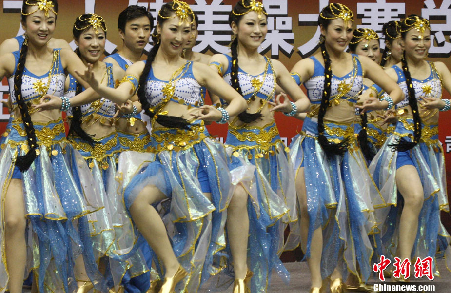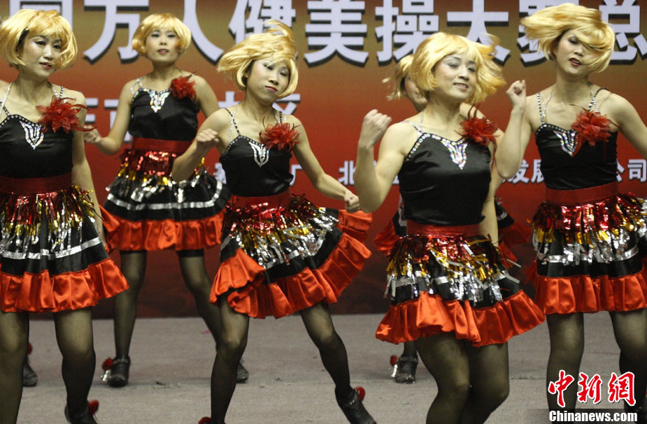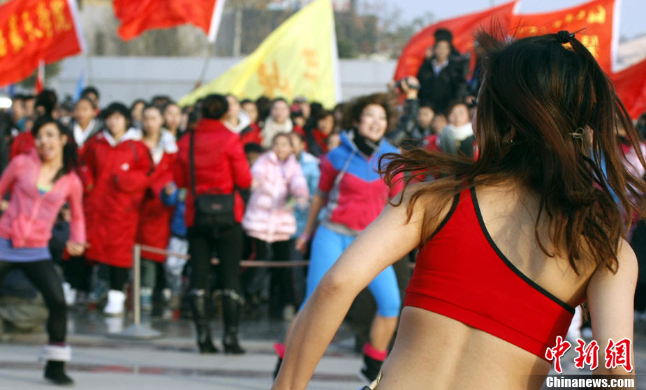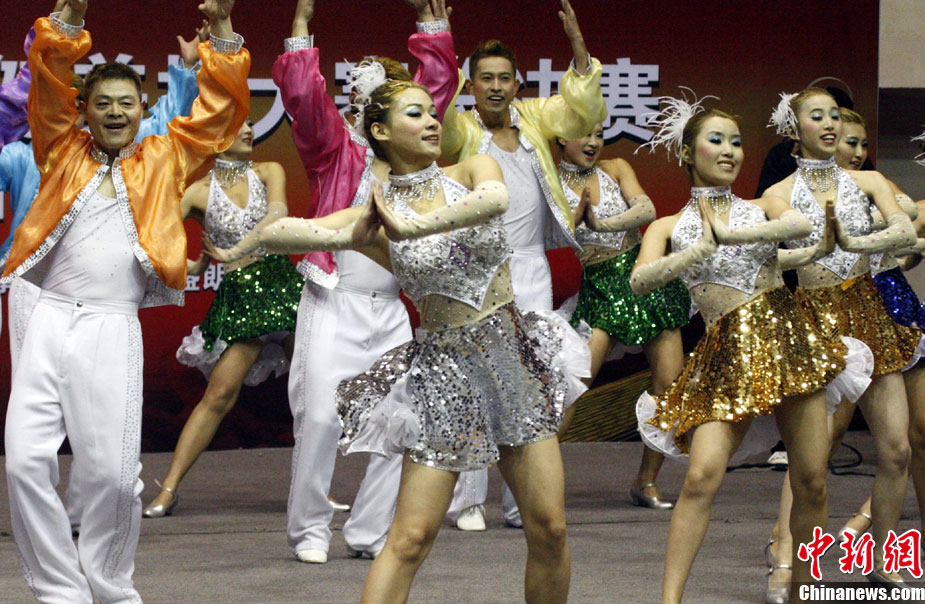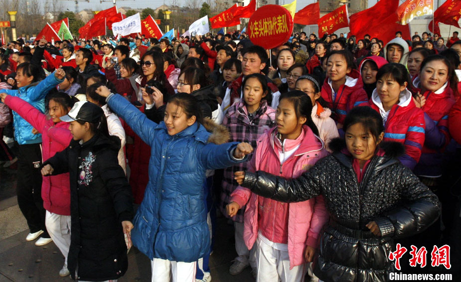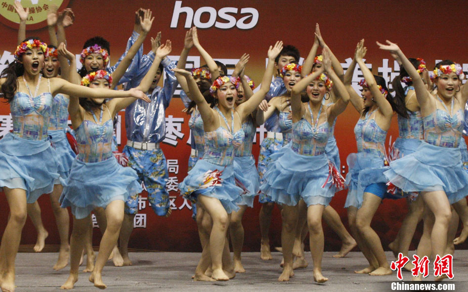 12月9日,由中國國家體育總局體操運動管理中心、中國健美操協會、浩沙國際健身管理有限公司以及山東省棗莊市市中區聯合主辦的2010年第9屆“浩沙杯”中國內地萬人健美操大賽在山東棗莊拉開帷幕,來自中國內地20個分賽區的1700余名選手匯聚一地,大賽包括少兒組、中學組、大專學院組、健身俱樂部組、中老年組、家庭組等共10個組別的賽事項目。圖為 “浩沙杯”中國內地萬人健美操大賽在棗莊東湖廣場拉開帷幕。
