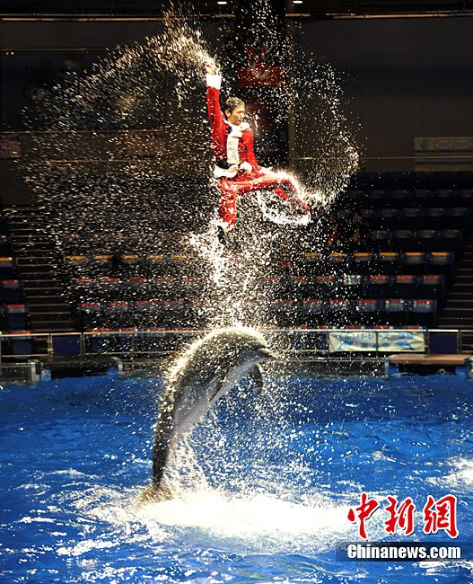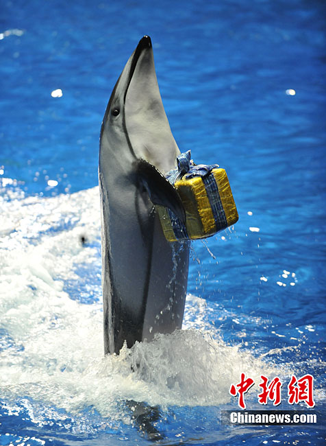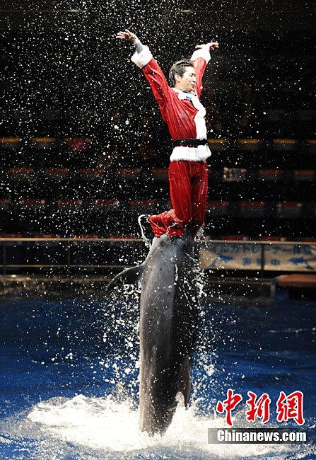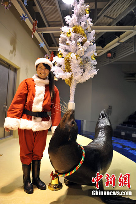 當地時間12月13日,日本東京一家水族館內的海洋動物進行了一場精彩的圣誕表演。海豹、海豚為現場觀眾送去了一件件圣誕禮物。