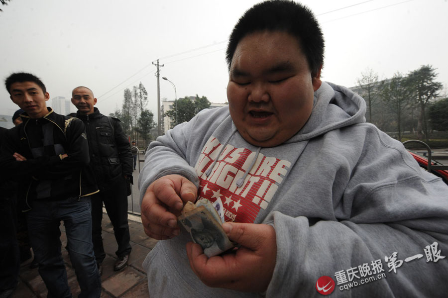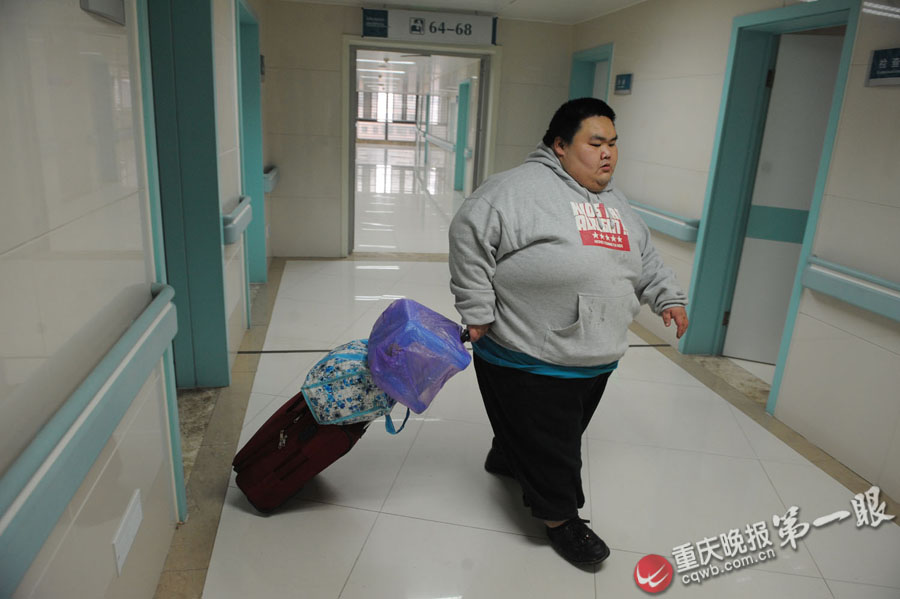 醫生介紹,入院前梁用有225公斤,目前體重保持在175公斤左右。“他減肥的毅力不夠,不能完全按醫生的規定執行。”醫生說,今年中秋梁用請假回家,那知短短一周體重就反彈了15公斤。“再也不敢那樣了,如果達到手術指標,早點手術當然好喲!”嘿嘿直笑的梁用稱,他再也不敢輕易出院了。