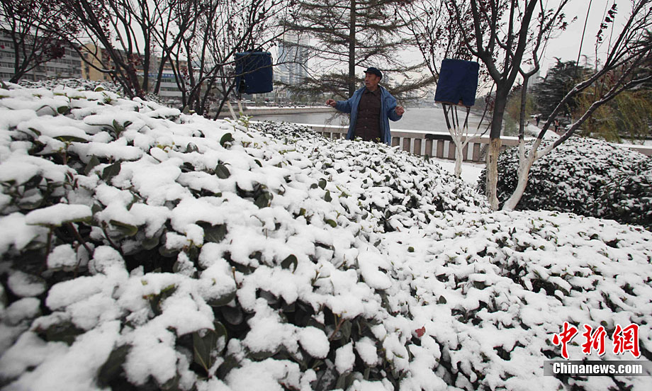 12月14日清晨,市民在落雪的車上寫下“下雪了”。當日,江蘇淮安迎來了入冬首場雪。昨日上午,淮安上空開始淅淅瀝瀝的下起小雨并伴有大風,到今日凌晨時分,“羞羞答答”的雪花伴著小雨光臨淮安。陳忠軍 攝 圖片來源:CNSPHOTO
