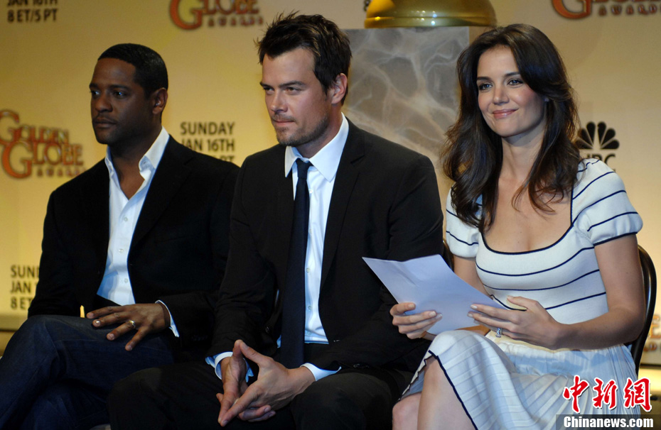 當(dāng)?shù)貢r(shí)間12月14日凌晨,第68屆美國(guó)金球獎(jiǎng)提名名單揭曉。《國(guó)王的演說(shuō)》、《社群網(wǎng)戰(zhàn)》和《斗士》領(lǐng)跑電影類獎(jiǎng)項(xiàng)提名。圖為好萊塢明星、湯姆·克魯斯的妻子凱蒂·霍爾姆斯宣讀提名名單。中新社發(fā) 張煒 攝