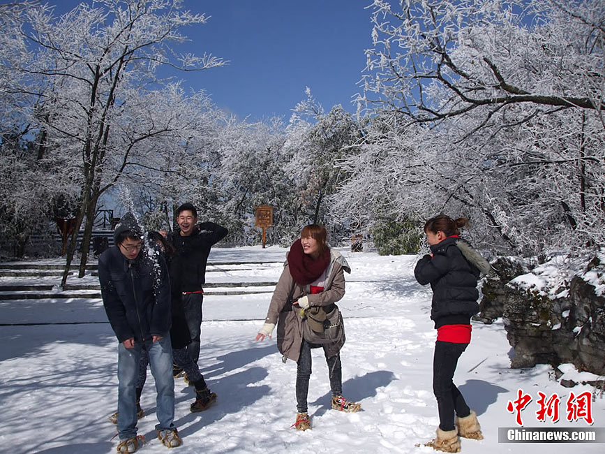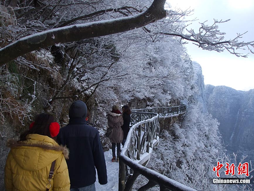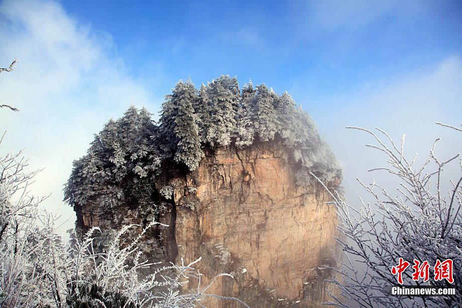 12月16日,世界自然遺產張家界雪后放晴,天子山、黃石寨等景點出現美輪美奐的云海奇觀。白雪覆蓋的石英砂巖峰林,在云蒸霞蔚之間更顯色彩斑斕,恍若仙境,令海內外游客無不陶醉其中。王傳殊 鄧道理 攝