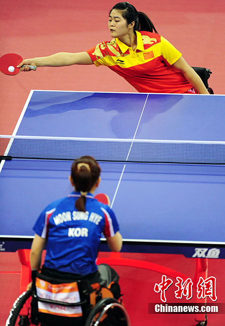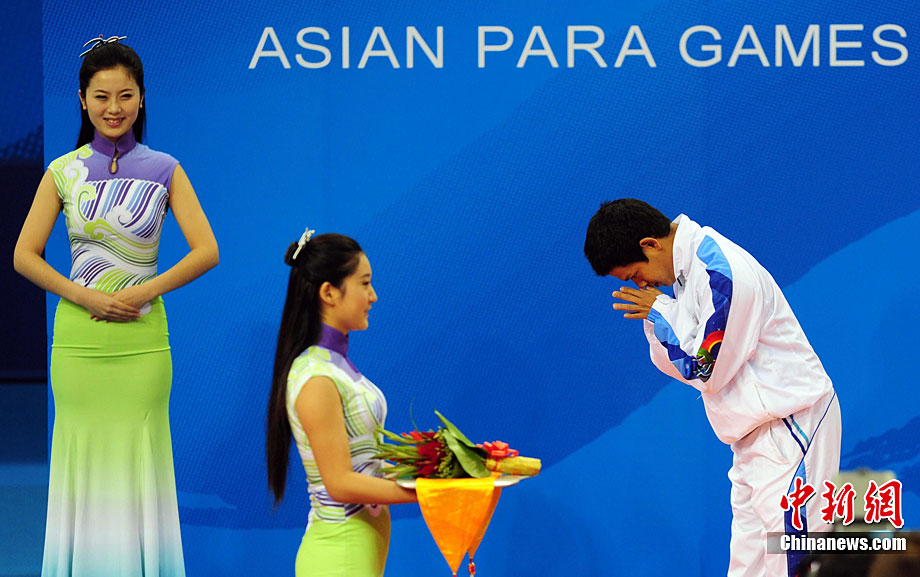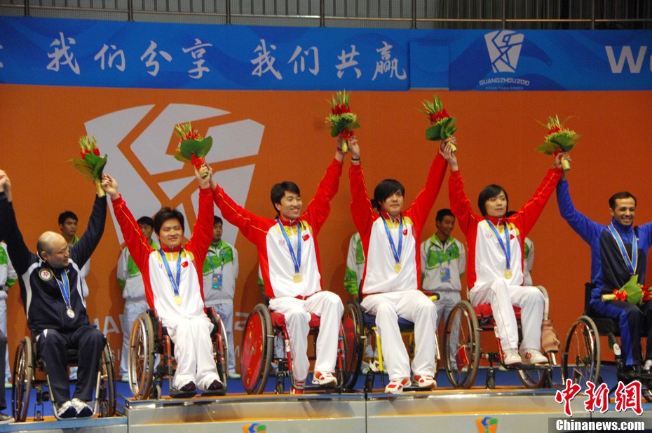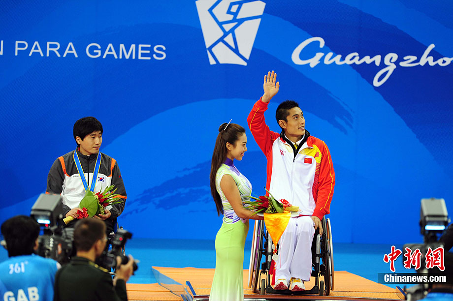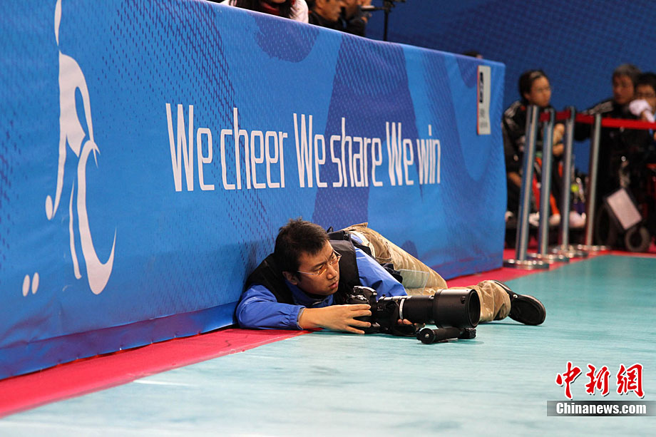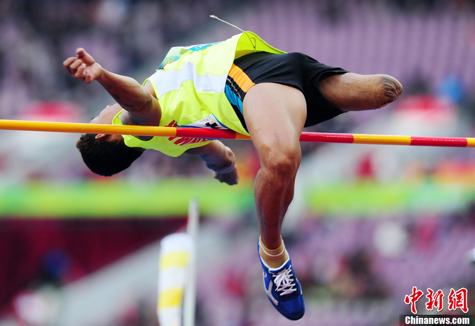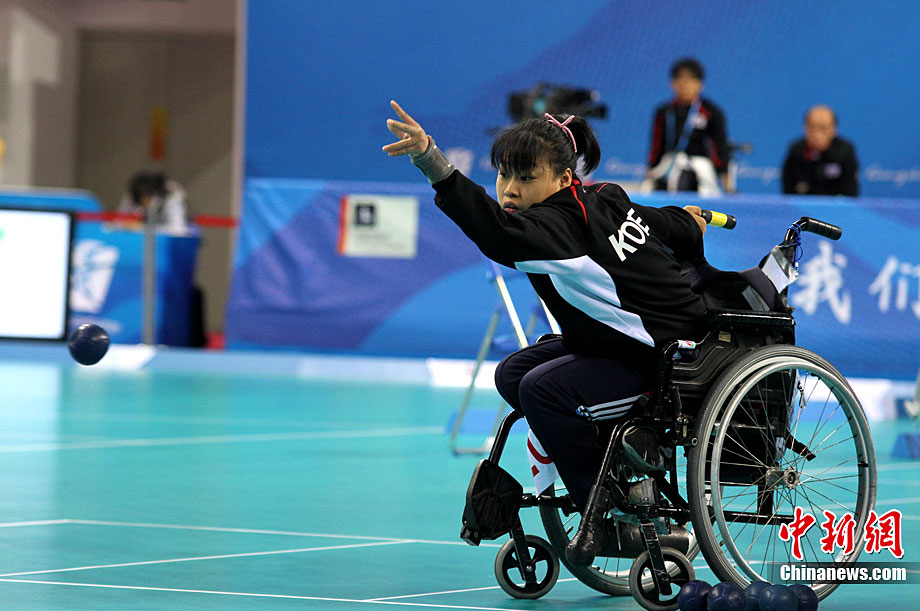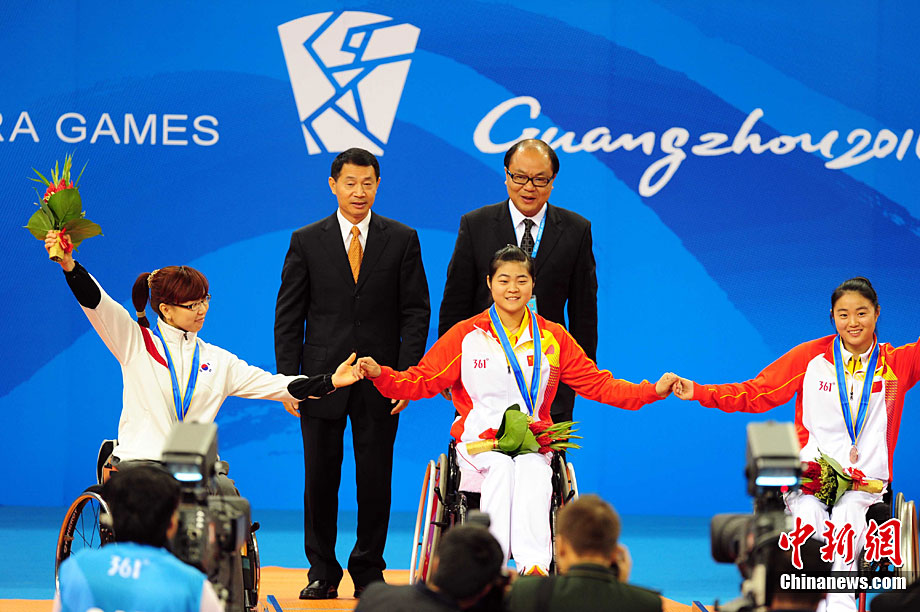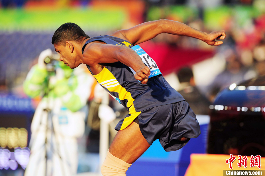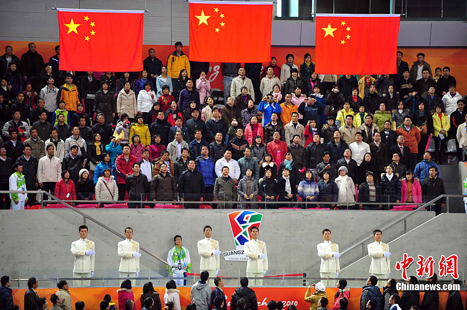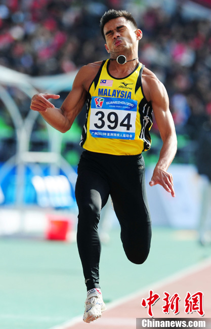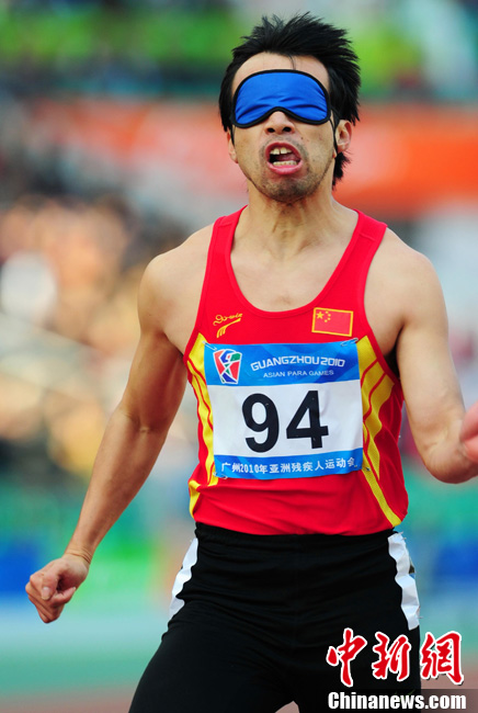 12月16日,廣州2010年亞殘運(yùn)會田徑賽進(jìn)入第3天,廣州遭遇寒流來襲氣溫降到最低2度,最高氣溫僅7度,亞洲選手在寒冷的氣候條件下參賽,錚錚鐵漢自我挑戰(zhàn)。中新社記者 陳文 攝