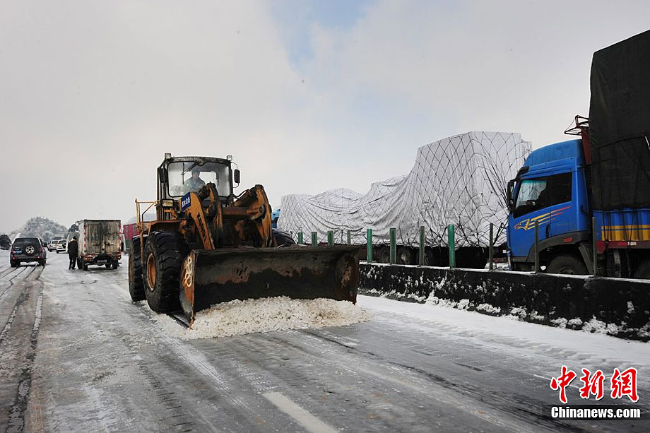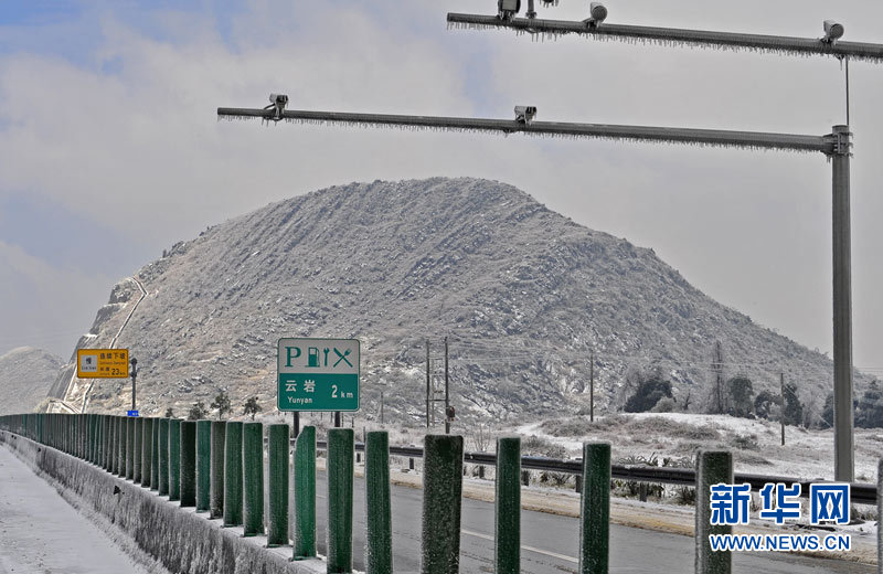 受強冷空氣南下影響,廣東北部山區氣溫降至零下,境內的京港澳高速乳源段和坪乳公路路面結冰,交通從12月16日凌晨開始中斷,大量車輛滯留。經全力抗冰搶險,相關路段于16日14時許恢復正常通行。17日,已搶通的京港澳高速公路粵北段路面再次結冰,車輛滯留10公里。李凌 攝