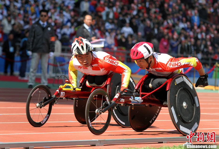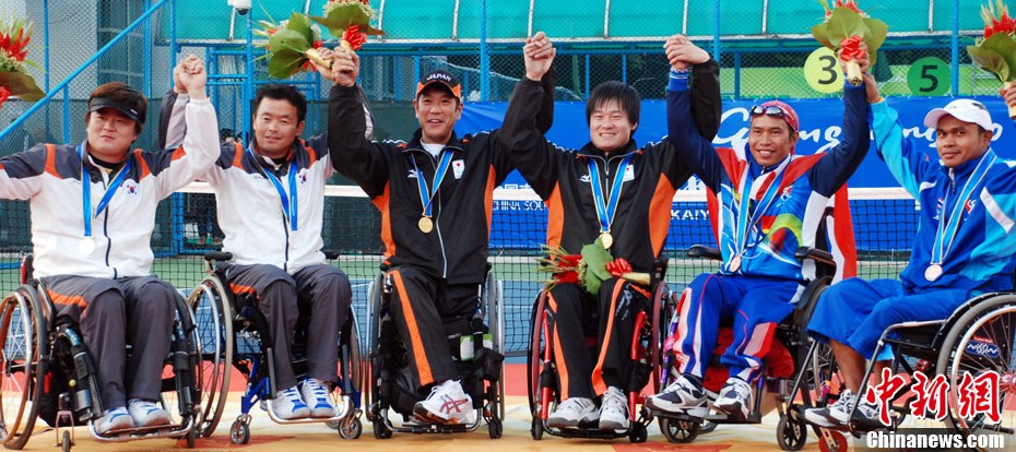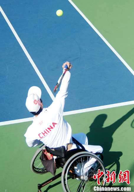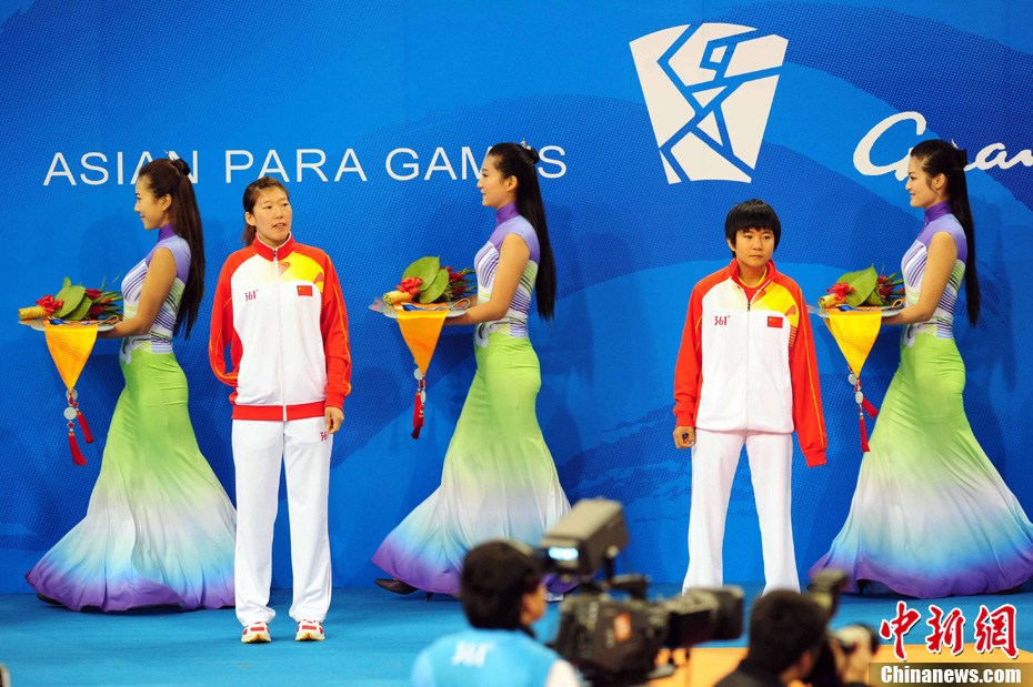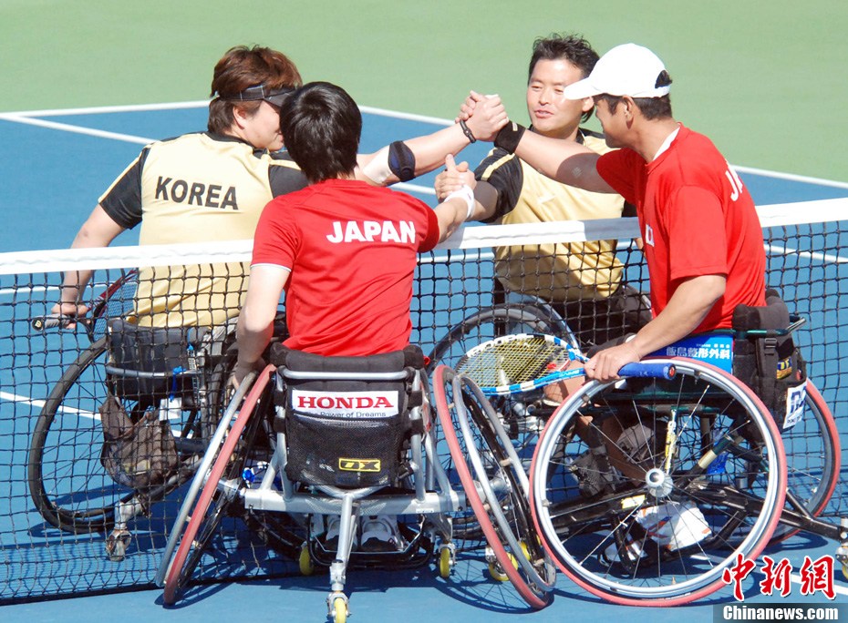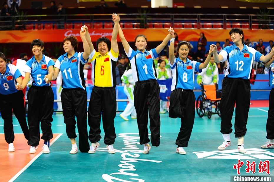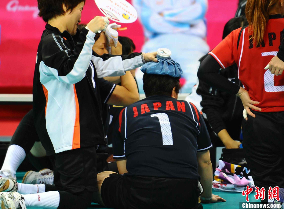 12月18日下午,日本女子坐式排球隊在決賽中1:3不敵中國隊。比賽暫停時,日本隊替補球員為主力球員扇扇子。中新社記者 柯小軍 攝