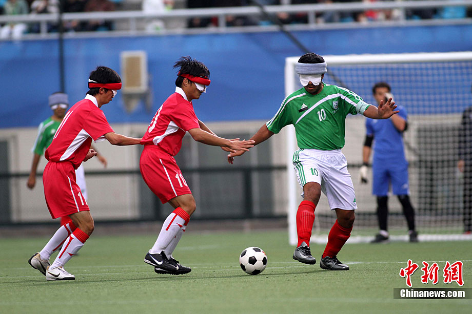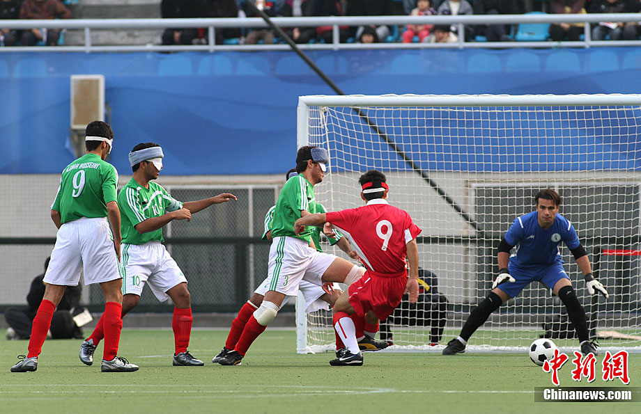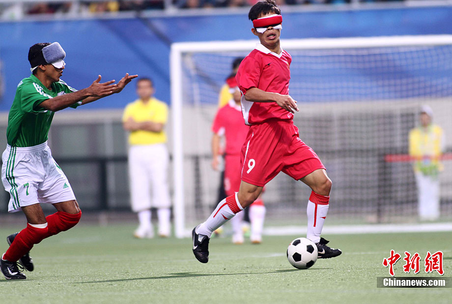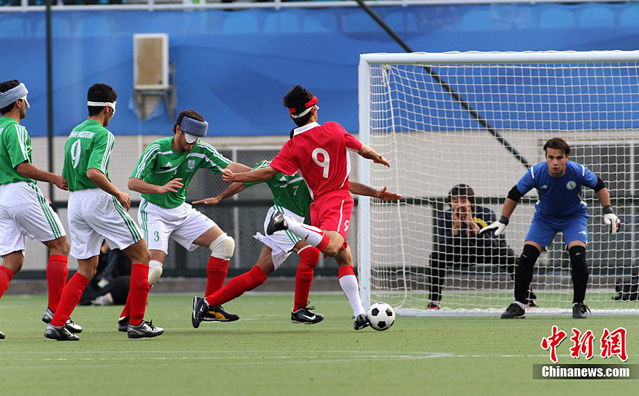 12月18日,亞殘運會廣州奧林匹克體育中心,在五人制(男子)足球決賽中,中國隊與伊朗隊的選手們充分發(fā)揮運動員的拼搏精神。經(jīng)過激戰(zhàn),中國隊最后以1:0的成績戰(zhàn)勝伊朗獲得金牌。張美安 攝