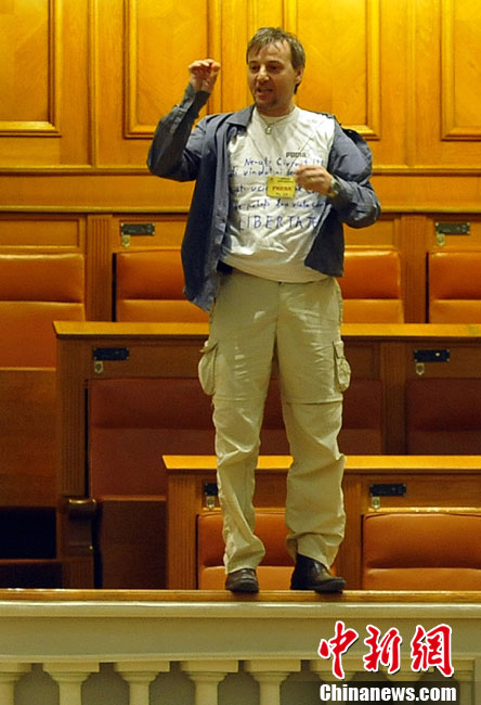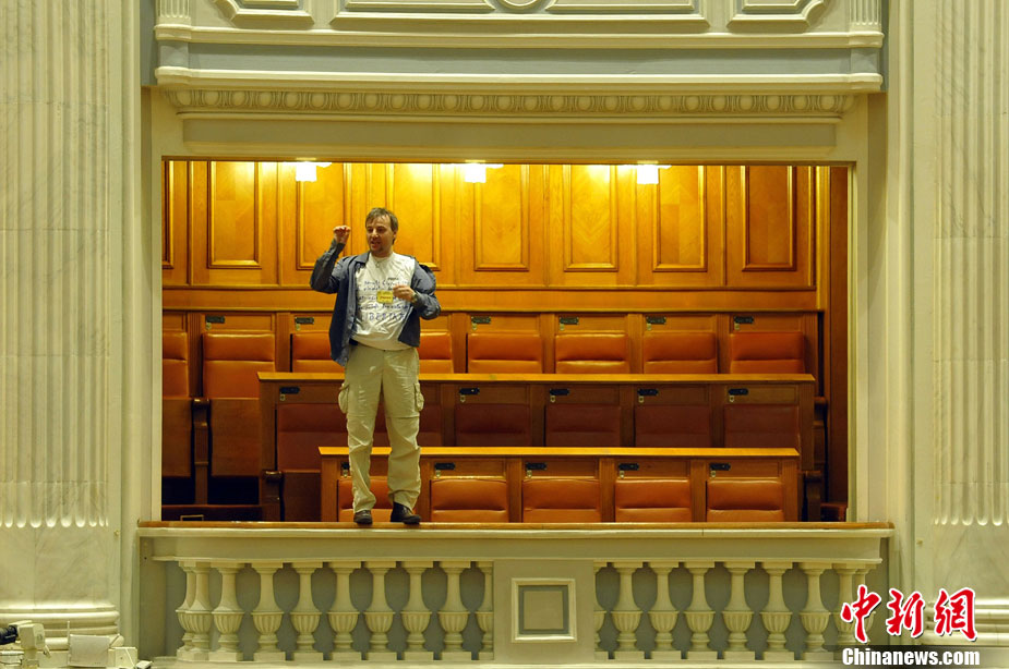 當(dāng)?shù)貢r(shí)間12月23日,羅馬尼亞一名男子為抗議殘障兒子的社會(huì)福利遭刪減,從國會(huì)旁觀席的看臺跳下,震驚了總理及在場議員。不過經(jīng)緊急送醫(yī)后,這名男子脫離了生命危險(xiǎn)。據(jù)悉,這名跳樓男子是電視臺的工程人員。