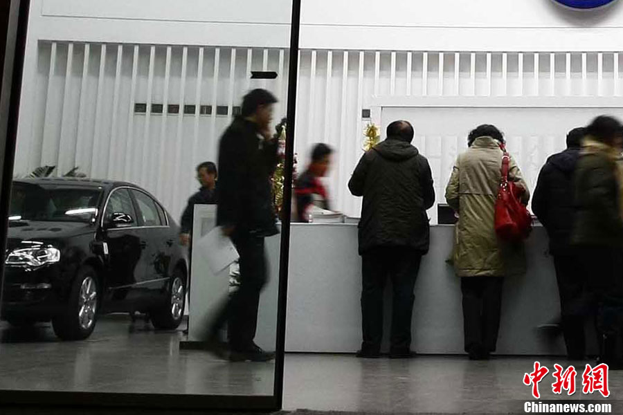 12月23日夜,北京民眾連夜排隊購置新車。當日下午,北京市人民政府新聞辦公室召開“北京交通改善措施”新聞發布會,正式公布了《關于進一步推進首都交通科學發展 加大力度緩解交通擁堵工作的意見》,將實行綜合措施治理交通擁堵。其中,2011年度北京小客車總量額度指標控制為24萬個,牌照通過搖號無償分配的政策成為民眾關注的焦點。中新社記者 富田 攝