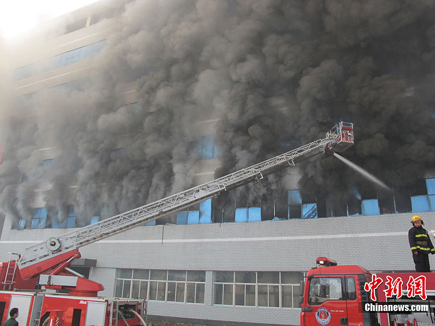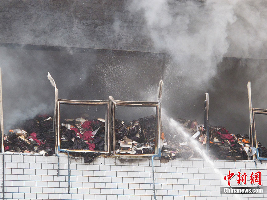 12月28日上午10時(shí)50分許,浙江省義烏市知名企業(yè)浪莎集團(tuán)倉(cāng)庫(kù)樓發(fā)生火災(zāi)。因火勢(shì)較大,金華消防總共出動(dòng)了三十幾輛消防車(chē)參與救火,倉(cāng)庫(kù)內(nèi)9名工作人員均已安全疏散,確定無(wú)人員傷亡情況。張茵 攝