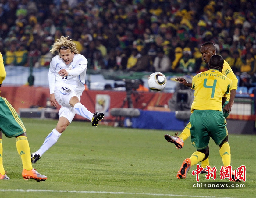 6月17日,世界杯A組第二輪南非迎戰烏拉圭。最終憑借弗蘭的梅開二度和佩雷拉終場補時的進球,烏拉圭隊以3-0擊敗南非,出線形勢一片大好。