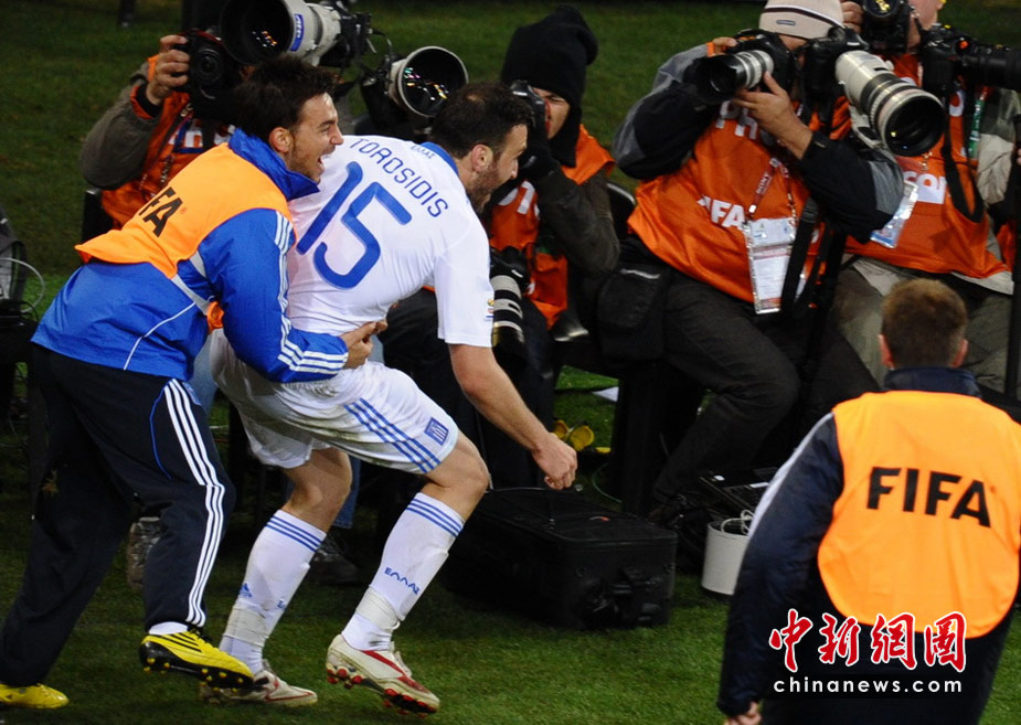 6月17日,南非世界杯B組第二輪比賽打響,由歐洲勁旅希臘在布隆方丹的自由洲球場迎戰非洲雄鷹尼日利亞。上班時尼日利亞任意球率先破門,但此后被紅牌罰下一人,希臘隊隨即抓住機會,在上下半場各入一球,以2-1逆轉擊敗尼日利亞隊。