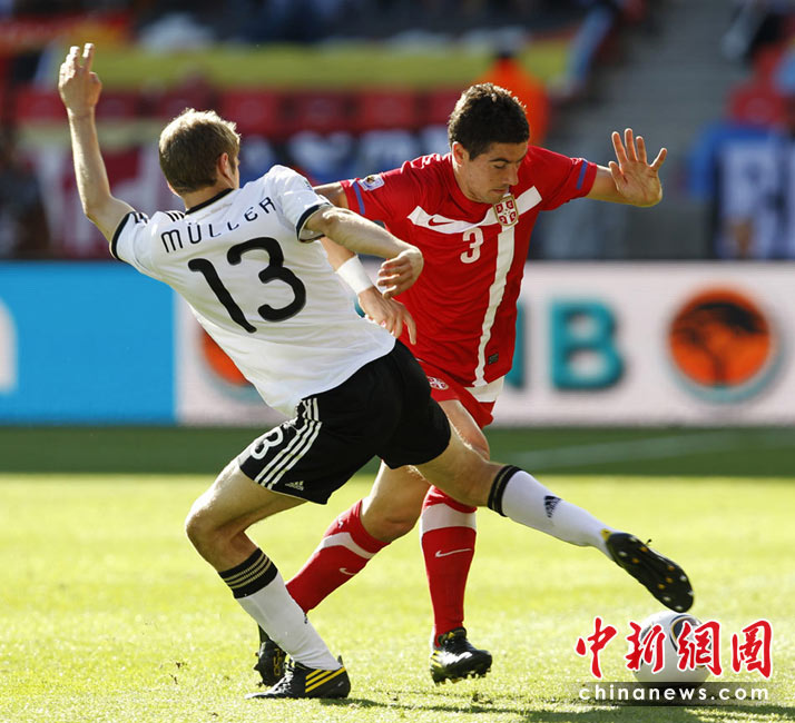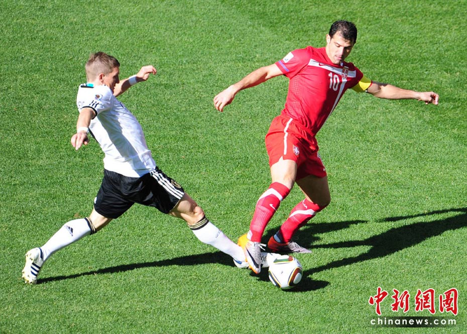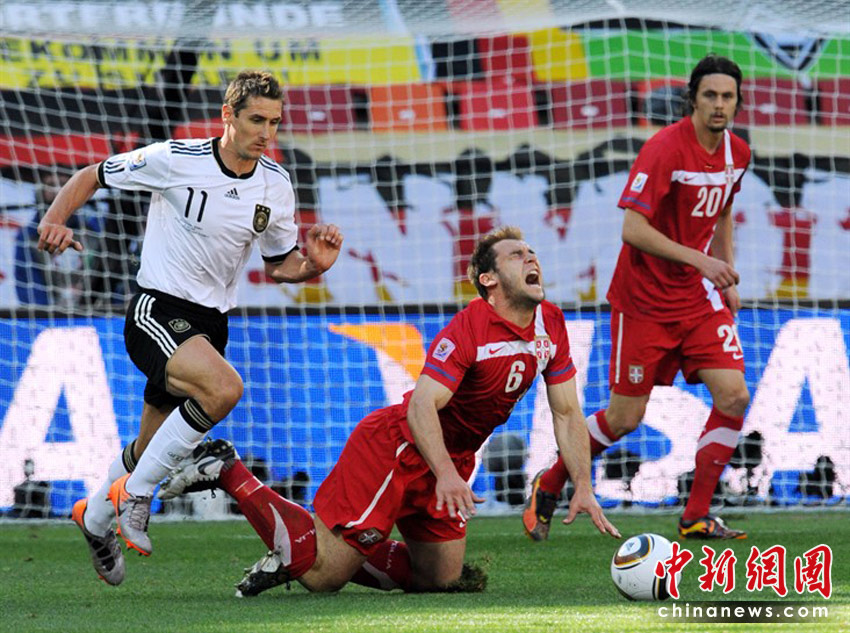 北京時間6月18日晚19:30分,世界杯小組賽D組德國迎戰塞爾維亞。德國前鋒克洛澤累計兩張黃牌被罰下場,比賽38分鐘塞爾維亞隊約萬諾維奇頭球率先破門破門。此后比賽中,德國隊獲得一次點球機會,波多爾斯基主罰,但他罰出的球被塞爾維亞門將斯托伊科維奇撲出。最終塞爾維亞1:0戰勝德國隊。