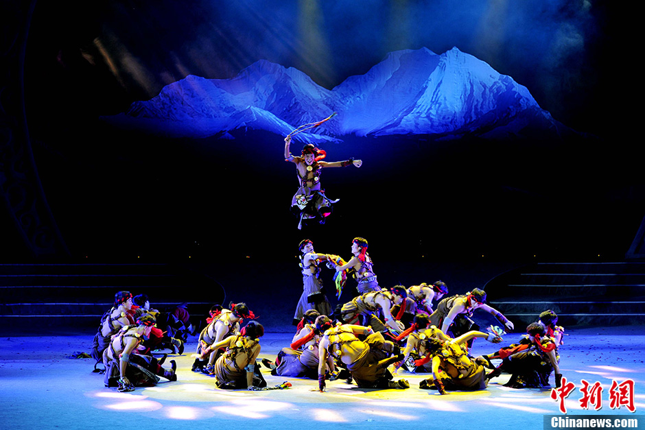 6月23日晚間,為期9天的第四屆中國成都國際非物質文化遺產節在成都閉幕。以表彰保護、發揚、傳承非物質文化遺產先進個人、集體為目的的“太陽神鳥”獎項也同時舉行了頒獎儀式。閉幕式上,來自泰國、西班牙、剛果(金)等國的表演者以及中國四川、內蒙古等地的藝術家,呈現了一場名為“文明的盛典”的藝術大餐。圖為閉幕式上的文藝演出。安源 攝