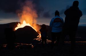 當地時間5月18日,冰島雷克雅內斯半島,法格拉達爾火山噴發,滾滾熔巖流淌,壯觀景象吸引游客前來圍觀“打卡”。
