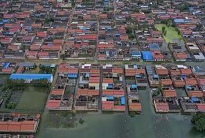 10月11日,山西省介休市,洪水倒灌南橋頭村,致使村莊積水嚴重,救援人員在村外河堤旁使用大型設備掘開一個泄洪口,加速排洪。日前,受連續降雨影響,汾河介休段洪峰過境后水位上漲,堤岸及沿河部分民房、糧田被淹,當地政府組織相關部門在現場抗洪搶險。中新社記者 韋亮 攝