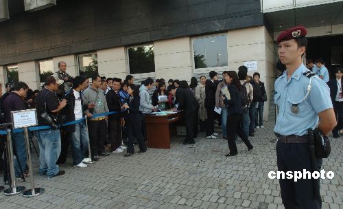 百余名新聞媒體記者在澳門終審法院門前排隊等候。