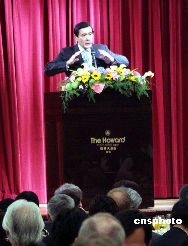 11月29日,馬英九應美國、歐洲等四大在臺商會之邀在臺北發表專題演講,提出兩岸直航等經濟議題,吸引外商。中新社發 黃少華 攝