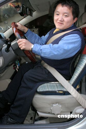 身高只有一米二三的程健智是臺灣最矮的計程車司機,他罹患俗稱“玻璃娃娃”的先天成骨不全癥罕見疾病,身材特別矮小,為此,考駕照兩次才取得一般駕照、出租車職業駕駛執照。在此之前,有獸醫背景的他,曾當過“農委會”的研究助理,他喜歡開車,也為了想和人群接觸,一個多月前才轉行開出租車。程健智將部分所得捐出,幫助其他“玻璃娃娃”。十二月二十日下午,程健智現身臺北市西寧北路,吸引大批記者訪攝。中新社發 董會峰 攝