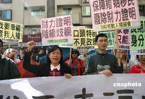 2007年是兩岸通婚二十周年,目前有超過二十五萬名大陸配偶在臺灣生活。但由于當局的限制性政策,大陸配偶在島內(nèi)的權(quán)利難以得到保障。十二月二十一日,“中華兩岸婚姻協(xié)調(diào)促進會”在“移民署”門前集會,申要人權(quán)與平等待遇。中新社發(fā) 陳國華 攝