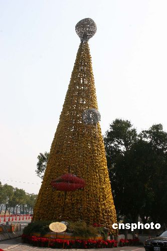 臺灣各地圣誕氣氛濃郁,圣誕樹形形色色。圖為云林縣古坑鄉(xiāng)的“陽光之吻”柳丁圣誕樹,使用了約一萬三千多公斤柳丁,富有創(chuàng)意、全臺首見。中新社發(fā) 董會峰 攝