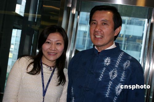前臺北市長馬英九特別費案,將于二十八日二審宣判。馬英九重申,他對他的清白有信心,對法院的公正有期待。圖為十二月二十七日,馬英九在出席一個公開活動后,與臺北縣一名女員工合影留念。中新社發 董會峰 攝