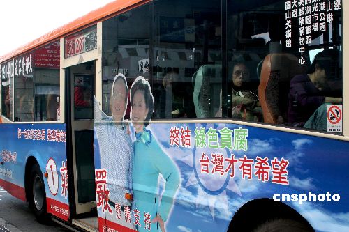 圖為臺(tái)北市一輛公交車(chē)上刊登的“立委”候選人廣告。