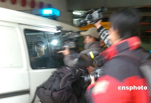 新聞媒體在澳門初級法院門口追拍押解歐文龍親屬的囚車。