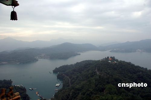 一月二十二日,從日月潭周邊制高點——慈恩塔頂層拍攝到的日月潭綺麗風光。站在蔣介石當年因思念母親而專門修建的慈恩塔頂層上觀賞,日月潭全貌盡收眼底。中新社發(fā) 孫自法 攝