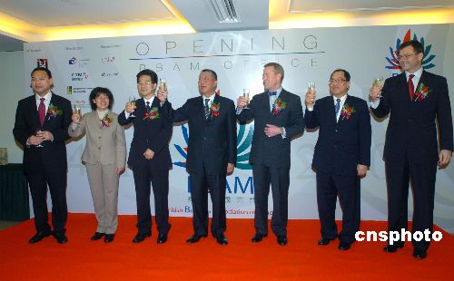 一月二十四日,澳門英國商會辦事處在中土大廈正式啟用,澳門特首何厚鏵等嘉賓親臨舉杯祝賀。澳門英國商會辦事處將擔任英澳兩地政府和商界之間的橋梁,為兩地造就商機、聯系及交流機會。中新社發 史利 攝