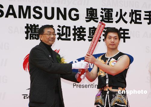 一月二十六日,北京奧運會圣火傳遞的全球合作伙伴三星電子在香港時代廣場舉行發(fā)布活動,揭曉香港及澳門的公眾、名人及運動員組奧運火炬手名單。中新社發(fā) 武仲林 攝