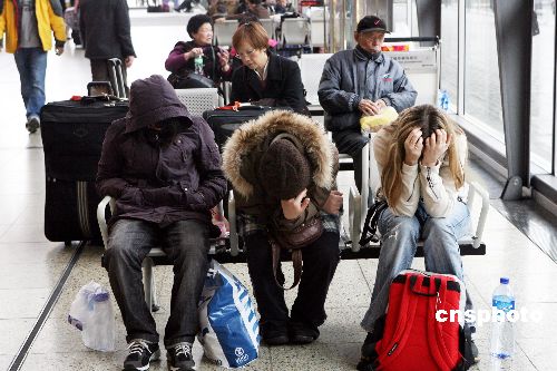 一月二十七日,本應二十六日下午三時搭乘T98次京九直通車返京的旅客滯留紅磡車站。由于天氣原因,T98次京九直通車二十七日下午二時后才駛離香港紅磡車站,比原定日期延誤一天。中新社發 武仲林 攝