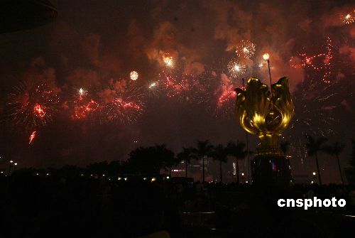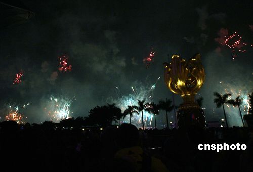 二月八日晚,香港舉行煙花匯演慶新春,警方預(yù)計(jì)四十多萬(wàn)人在維多利亞港兩岸觀看。據(jù)悉,此次鼠年賀歲煙花耗資七百萬(wàn)元精心打造,共發(fā)放十幕逾四萬(wàn)發(fā)煙火,總長(zhǎng)度達(dá)一公里。圖為寓意國(guó)家富強(qiáng),人民生活富足的“8”圖案。中新社發(fā) 武仲林 攝