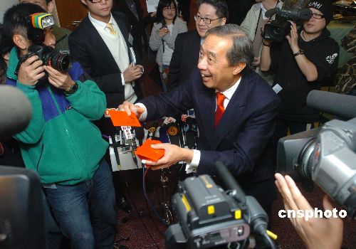 二月十一日,香港交易所舉行農歷鼠年首個交易日開市儀式,港交所主席夏佳理在交易所向到場采訪的財經界記者拜年并發紅包。 中新社發 鄧慶樂 攝
