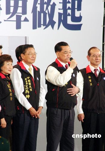 3月22日,中國國民黨候選人馬英九、蕭萬長在臺(tái)灣地區(qū)領(lǐng)導(dǎo)人大選中以221萬票的領(lǐng)先優(yōu)勢(shì)獲勝,大批支持者在馬蕭競(jìng)選總部前集會(huì)歡慶。圖為中國國民黨榮譽(yù)主席連戰(zhàn)在集會(huì)現(xiàn)場(chǎng)發(fā)表演講。中新社發(fā) 黃少華 攝