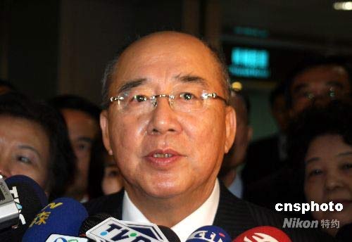 5月26日上午,由中國國民黨主席吳伯雄率領的中國國民黨訪問團一行啟程前往大陸。圖為吳伯雄在桃園機場登機前發表談話。中新社發 陳立宇 攝