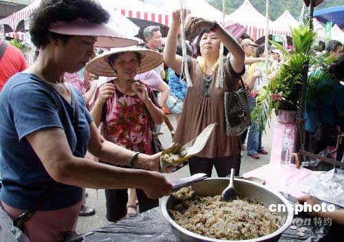 圖:臺(tái)灣民間迎端午時(shí)興“街頭包粽DIY”