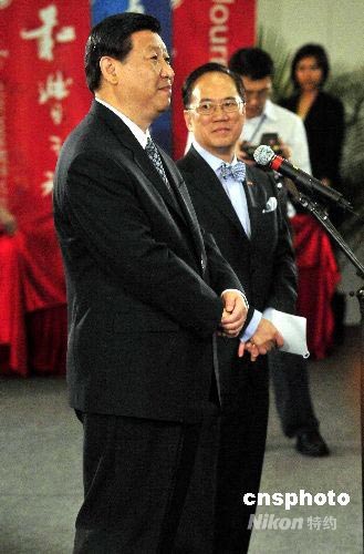 七月六日下午,國家副主席習近平在香港奧運馬術場地,會見北京奧運香港運動員代表。中新社發 譚達明 攝