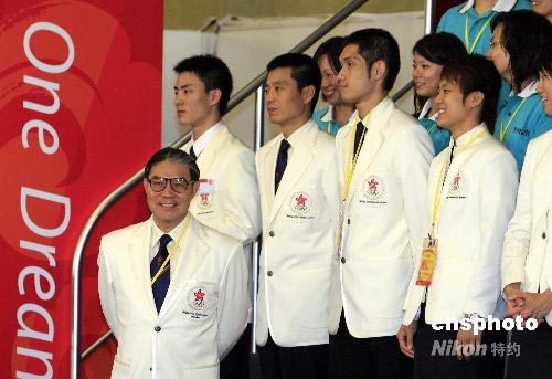 七月六日下午,中國國家副主席習(xí)近平在香港沙田奧運(yùn)馬術(shù)場地接見奧運(yùn)香港運(yùn)動員代表和義工,并鼓勵他們?yōu)閵W運(yùn)出力,為祖國爭光。習(xí)近平副主席的加油打氣后,香港奧委會會長霍震霆(左一)及運(yùn)動員和義工們個個臉上喜氣洋洋,精神倍增。中新社發(fā) 王麗南 攝
