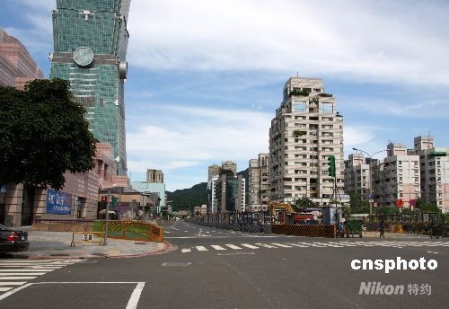 8月28日下午二時(shí)半至三時(shí),臺(tái)北市舉行“萬安演習(xí)”,車輛行人凈空。圖為原本車輛和行人繁忙的世貿(mào)中心大街一帶道路上空無一人。中新社發(fā) 陳立宇 攝